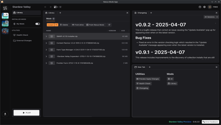 You can read the change log here: https://github.com/Nexus-Mods/NexusMods.App/releases/tag/v0.9.1