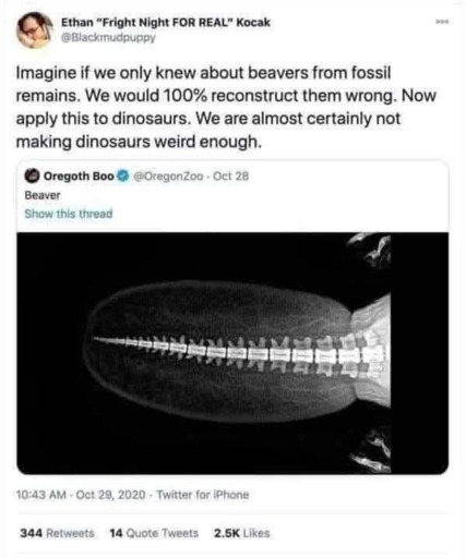 fossilesque@mander.xyzM to Science Memes@mander.xyzEnglish · 10 months agoMake dinosaurs weirdermander.xyzimagemessage-square56linkfedilinkarrow-up1850arrow-down138