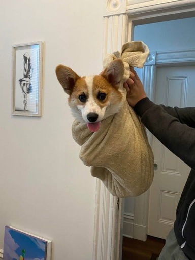 Corgi in a baggy