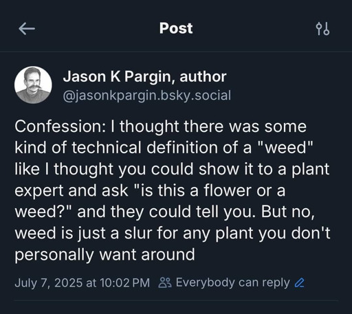 minus-squareWolf@lemmy.todaylinkfedilinkEnglisharrow-up3·6 months agoSame rules apply. If you don’t want it there, it’s a weed. If you don’t mind it being there, it isn’t.