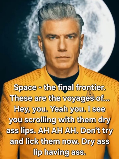 ummthatguy@lemmy.worldM to TenForward: Where Every Vulcan Knows Your Name@lemmy.worldEnglish · 4 months agoMoisturize me!lemmy.worldimagemessage-square17linkfedilinkarrow-up1115arrow-down121