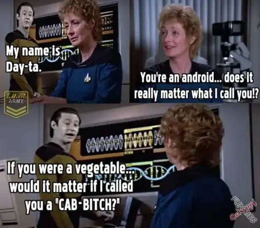 minus-squareOnomatopoeia@lemmy.cafelinkfedilinkEnglisharrow-up7·1 month agoPulaski was in the original - she tried to take over Kirk’s body to be captain.