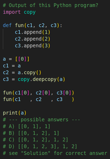 An exercise to help build the right mental model for Python data. The “Solution” link uses memory_graph to visualize execution and reveals what’s actually happening: