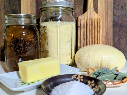 Decided I’m going with a cavatelli and buttered sage sauce for dinner. Sage from the back yard, turkey stock from a free turkey, homemade semolina dough, hand made gnocchi board.