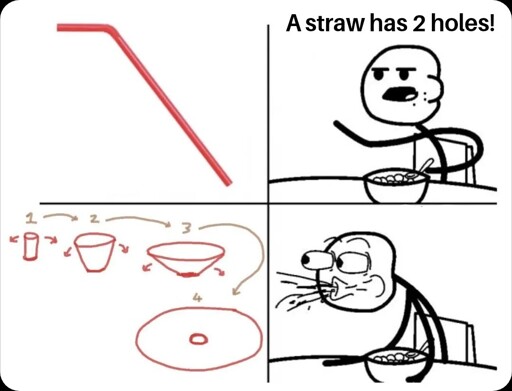 minus-squareMinnesotaGoddam@lemmy.worldlinkfedilinkEnglisharrow-up7·1 month agoI got a T shaped cat tunnel. It’s got two holes. I think. Topology can go suck a lemon