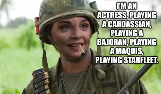Heh, I just watched “The Search” the other day which is actually what inspired this meme. The thought did cross my mind that “Seska” could be T’Rul wearing a Cardassian mask wearing a Bajoran mask.