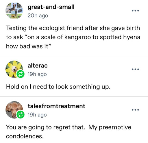 Good to know the Kangaroo one is in fact essentially “The baby just pops up in the pouch one day.”