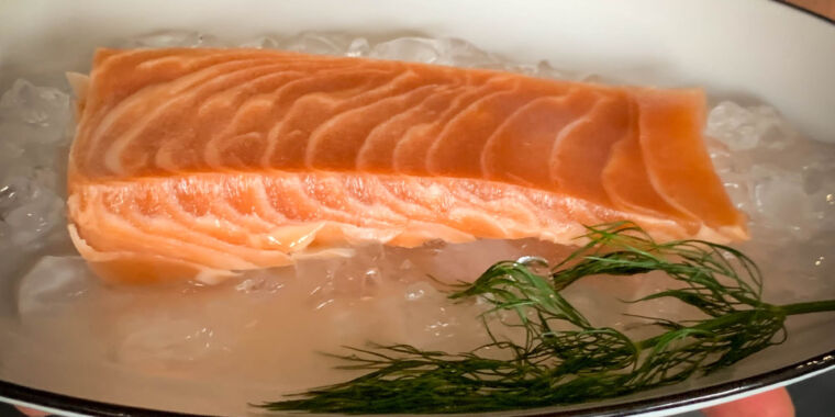 So it seems they essentially freeze dry a gel and use the holes left behind from the water after drying to add in proteins and such to make the meat feel more realistic. Pretty neat. Said it’s close, but not as full of flavor when cooked as salmon, and ceviche left it softer than salmon would.