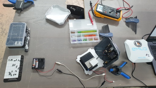 We maintain a small fleet of RTK GPS systems (Emlid Reach RS+ units or similar). But sometimes they sit too long on the shelf and parasitic drain kicks in. The manufacturer recommends recharging every three months, but ooops, this one went too long. If the batteries are too low, the battery management system (BMS) won’t charge the batteries at all when you attach the USB charger cable. In this case, the batteries were testing at 0.9V rather than the desired 3.4V.