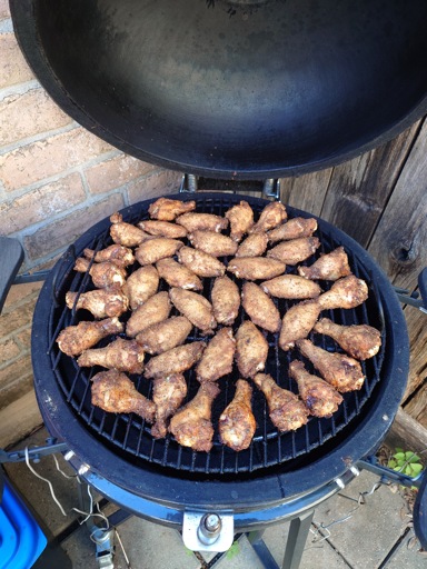 I have started fully breaking is down and separating the wings and drums, then spatchcocking the rest so I can get each part cooked just to their respective done-ness. It also helps it fit in my grill…