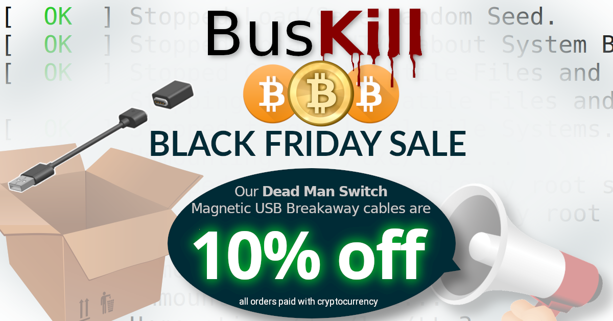 Technology@lemmy.ml•BusKill (Open-Source Hardware Dead Man Switch) Announces Bitcoin Black Friday Deal